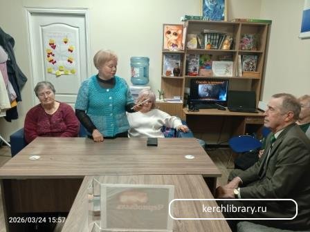 Для ветеранов № 4 Керченского городского Совета ветеранов проведен час поэзии «Жизнь свою народу отдаю», подготовленный сотрудником ЦГБ им. В. Г. Белинского.