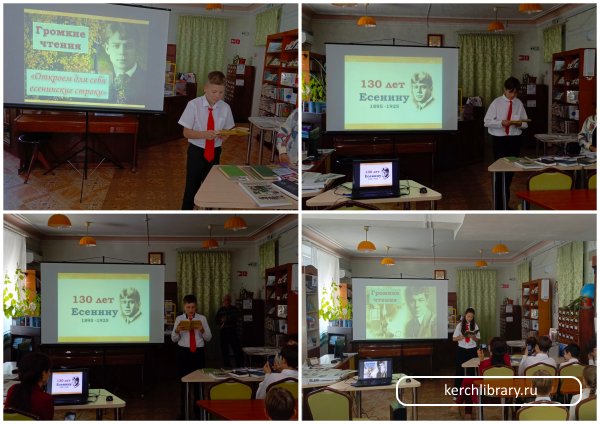 Во вступительном слове ведущий библиотекарь читального зала Пискун Т. И. рассказала, что чтения проводятся в связи со 130-летием со дня рождения русского советского поэта Сергея Есенина. Ребята познакомились с биографией Сергея Есенина, узнали о его детстве, проведённом в рязанском селе и глубокой связи с русской природой, посмотрели видеофильм о жизни и творчестве поэта.