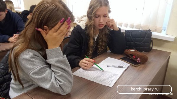 Заведующая читальным залом ЦГБ им. В. Г. Белинского Иващенко О. Ю. провела для студентов ГБПОУ РК «Керченский технологический техникум имени В. Н. Толстова» диспут «Смертельные шаги террора». Целью мероприятия было не только рассказать о том, насколько серьезна эта проблема, но и напомнить о поддержке тех, кто пострадал от рук террористов, а также о том, как важно всем вместе противостоять этой угрозе.