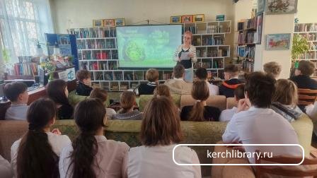 Для учащихся МБОУ г. Керчи РК «Школа – гимназия №1 имени Героя Советского Союза Е. И. Дёминой» в отделе «Абонемент» ЦГБ им. В. Г. Белинского прошло мероприятие литературный обзор «Береги свою планету - ведь другой похожей нету».