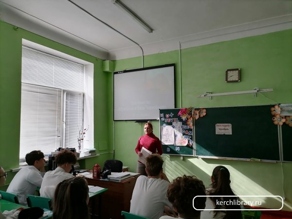 Информационный час «Живое общение-день без интернета»В стенах МБОУ г. Керчь «Школа № 11 им. Серго Орджоникидзе» для старшеклассников прошел информационный час "Живое общение – день без интернета", подготовленный сотрудником библиотеки-филиала № 3 им. Н. Островского.