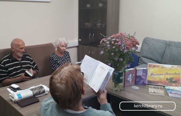 В Центре общения старшего поколения при Пенсионном фонде России г. Керчи заведующая библиотекой-филиалом № 3 им. Н. Островского Ардемасова В. В. провела литературно-музыкальный вечер «Осенние зарисовки». Библиотекарь рассказала, как в старину на Руси назывались осенние месяцы, гости мероприятия вспомнили осенние приметы, узнали, когда наступает астрономическая осень, с удовольствием приняли участие в поэтической викторине и в конкурсе «Дары природы», развеселились, отгадывая загадки-обманки, с интересом угадывали по осеннему кинокадру фильм.