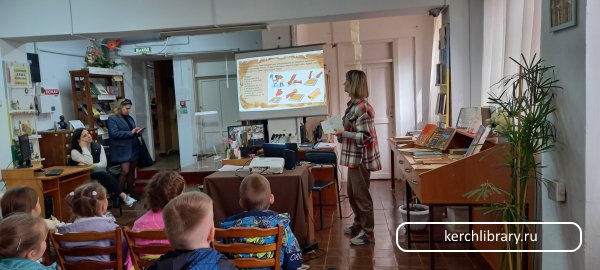 Была организована книжная выставка «Как появилась книга на свет». Из книги Е. Белоусова «Как Кирилл и Мефодий азбуку писали» дети узнали, что обозначали буквы славянской азбуки. Библиотекарь рассказала о книге «Русские народные загадки, пословицы, поговорки» и загадала детям загадки из этого сборника.