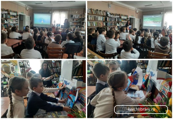 Затем была проведена увлекательная интерактивная игра «Знаешь ли ты Крым?». Участники игры, проявив свои знания о символике Крыма, его истории и культуре, с увлечением отвечали на вопросы и делились своими впечатлениями. В завершение ребята прослушали песню «Россия. Родина моя». В течение дня участники мероприятия знакомились с книгами, просматривали слайд-шоу о достопримечательностях Крыма, а те, кто ещё не был записан в библиотеку, стали её читателями.