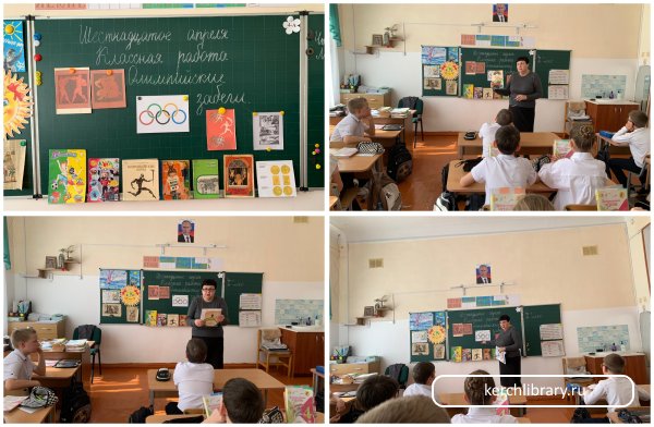 К 130-летию со дня проведения первых Олимпийских игр сотрудник библиотеки-филиала № 8 им. А. Гайдара для детей Стадниченко М. В. провела для четвероклассников МБОУ «Школа № 11 им. Серго Орджоникидзе» спортивную викторину «Олимпийские забеги».