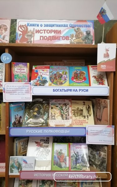 Книги о защитниках Отечества: истории подвиговВ библиотеке-филиале № 8 им. А. Гайдара в рамках Республиканского читательского марафона «Получи радость чтения» оформлена книжная выставка для ребят младшего школьного возраста «Книги о защитниках Отечества: истории подвигов».