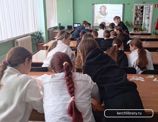 Библиотекарь Центральной детской модельной библиотеки имени В. Дубинина А. В. Уланова провела для учащихся МБОУ «Школа № 23 им. Героя Советского Союза С. Д. Пошивальникова» литературный час, посвященный дню памяти великого русского поэта А. С. Пушкина.