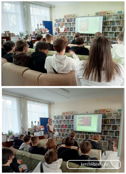 Ведущий библиотекарь Центральной городской библиотеки им. В. Г. Белинского Гулагина Е. В. для студентов Керченского политехнического колледжа подготовила и провела патриотический турнир «Защитники Отечества».